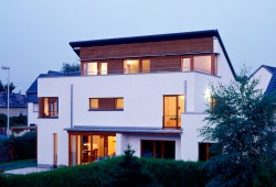 Vor die Straßenfassade legt sich wie ein Filter der Windfang mit angeschlossenem Carport, alle Wohnräume des EG öffnen sich zur Gartenseite, ebenso das Dachgeschoss mit der großen Dachterrasse.....