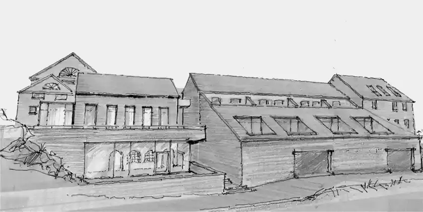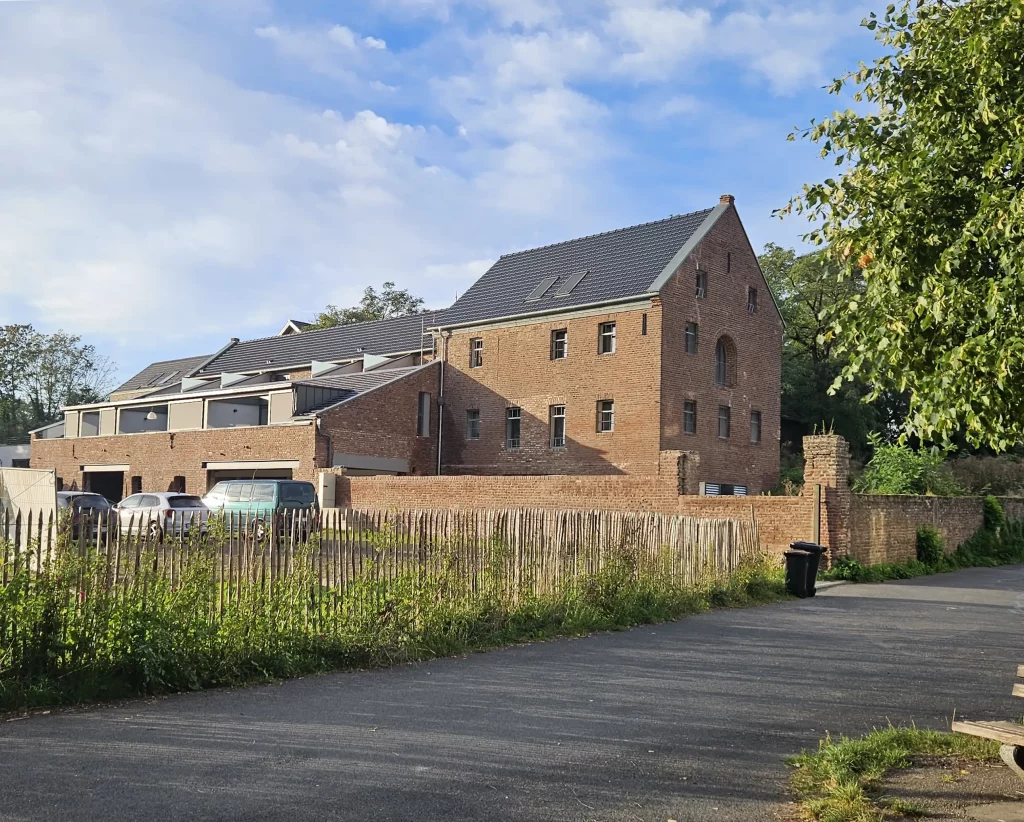Nach umfangreichen Bestandsaufnahmen und einer ausgiebigen Phase der Konzeptfindung wurde der Umbau des rheinseitigen Fabrikationsteils und des Haupthauses mit Seitenflügeln zu 12 Hauswohnungen und einem ergänzenden Neubau als Büro- und Austellungseinheit mit Verwalterwohnung von 2021 bis 2023 durchgeführt.